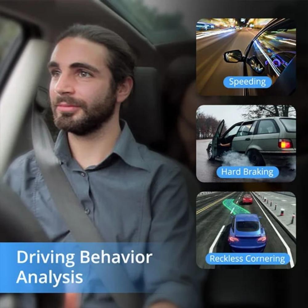 - امكانية رصد سرعة السائق و تسارع المركبة المفاجئ و استخدام الفرامل المفاجئ و الحركة داخل المقصورة و خروج المركبة عن المسار والتنبيه عند الانعطاف الحاد